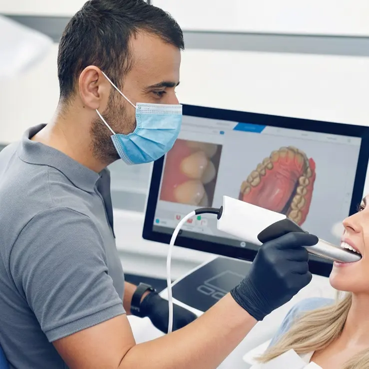 The clinic uses a 3D intraoral scanner, panoramic X-ray, RVG digital imaging, and a dental laser. Digital scanning means fewer impressions and more accurate results. Every case is planned on screen before any work starts.