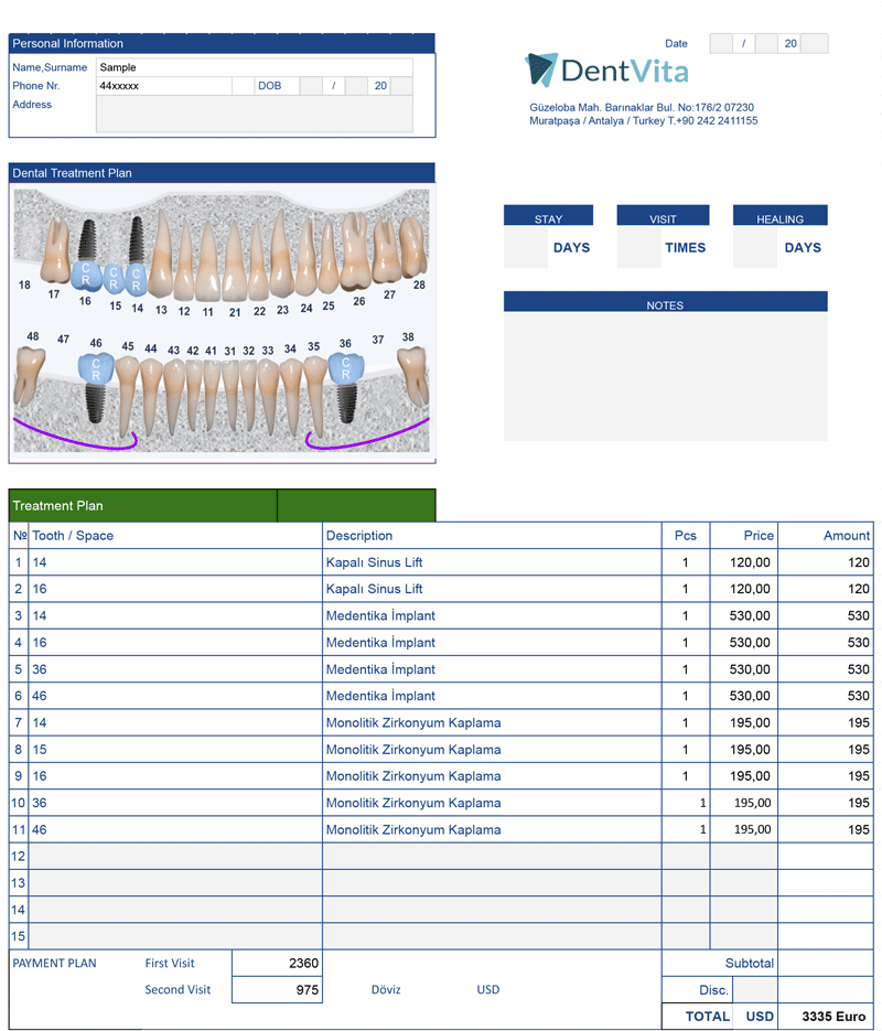 Yes. Send us your panoramic X-ray or photos of your teeth and we will put together a treatment plan with exact pricing. You will know the full cost before you travel.